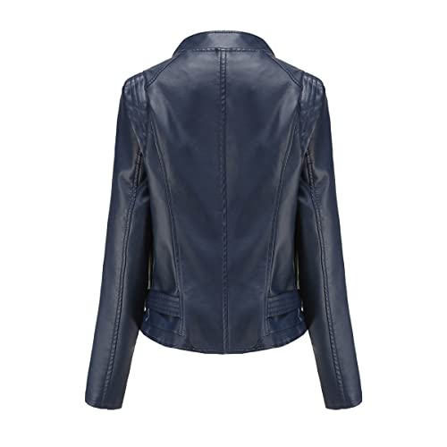 YYNUDA Giacca da donna in pelle con chiusura lampo, antivento, colletto alto, giacca da motociclista per primavera e autunno