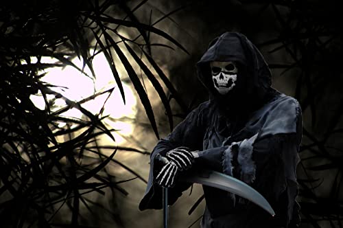 La confezione include: Mantello di Halloween, falce, guanti, sciarpa con testa scheletrica.