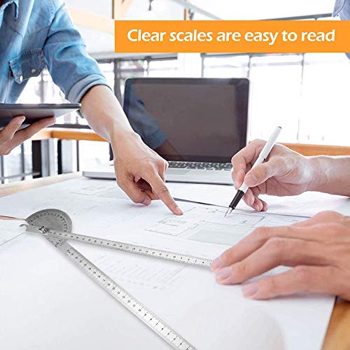 ✿Precisione d'uso: il righello del goniometro utilizza una scala metrica e può essere utilizzato per misurare l'angolo e la lunghezza. Le graduazioni sulla base e sulla riga sono incise con precisione al laser e poi riempite in nero per una lunga durata e una facile leggibilità. La freccia sul righello indica che l'angolo di lettura è preciso e veloce.