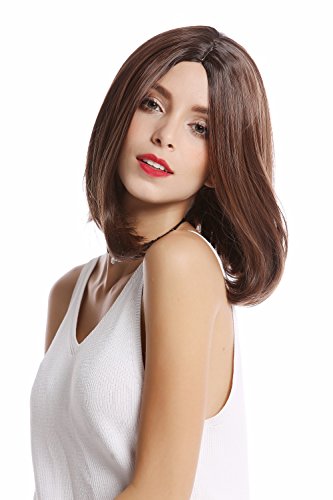 WIG ME UP - YZF-4365-4/30 Parrucca Donna Bob lungo Corta Altezza spalle Riga in mezzo Castano Castano ramato Mèches