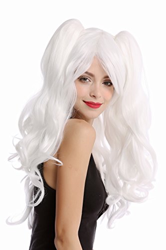 Uno tra i modelli più amati di parruche da cosplay...questa parrucca da donna, con un look carino da lolita gotica, è molto lunga e incredibilmente ondulata- sia la parrucca che le due lunghe code smontabili. Questa parrucca è bianca. Disponibili altri colori.