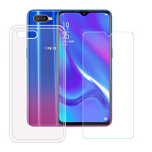 YZKJ Cover per Oppo RX17 Neo Trasparente Morbido Silicone Custodia Protettivo TPU Sottile Case + Pellicola Protettiva in Vetro Temperato per Oppo RX17 Neo (6.4")