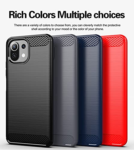 Custodia protettiva Fibra di Carbonio in silicone TPU di alta qualità con Pellicola Protettiva in Vetro Temperato, specifica per Xiaomi Mi 11 Lite (6.55 pollici).