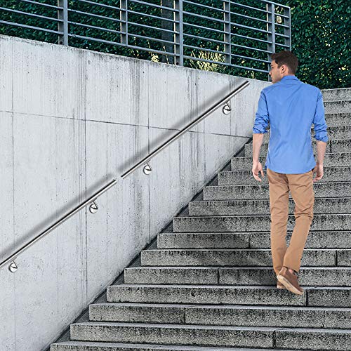 Yznahre Corrimano in acciaio inox, corrimano per scale, balcone, parapetto, ringhiera da parete, estremità dritta tappo e supporto Ø 40 mm (lunghezza 200 cm)