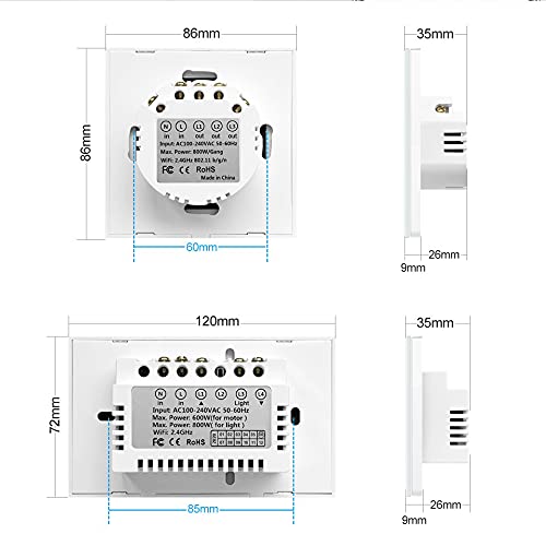YZWHKJ Interruttore Tapparelle WiFi Interruttore della Luce della Tenda del tapparelle del Rullo WiFi per Il Lavoro Elettrico delle Tende motorizzato Interruttore WiFi per Tenda (Color: 1 White)