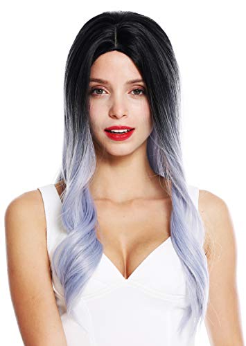 WIG ME UP - Z1851-88A/3925R Parrucca donna Lunga leggermente ondulata Riga in mezzo Ombre hair Nero Blu Grigio Mèches