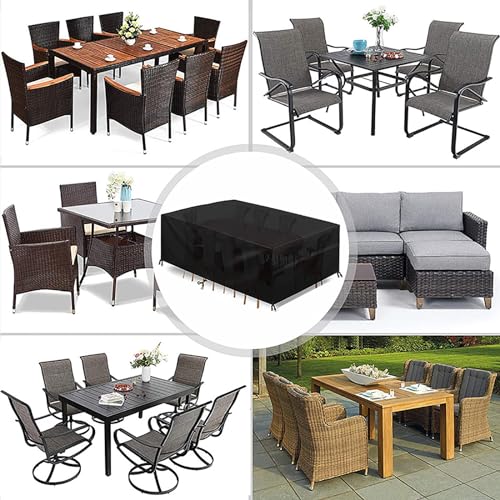 Dimensioni universali: questa copertura per mobili da giardino all'aperto impermeabile. Si adatta alla maggior parte dei mobili come tavolini da caffè, panche, tavolini da caffè, sedie, tovagliette da patio rotonde o ovali, 8-12 sedie o copridivano 6-8 posti. Si prega di misurare il set di mobili prima dell'acquisto.