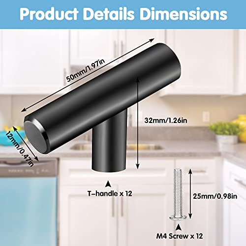 ZACUDA 12 Pezzi Manopole per Cassetti Pomelli per Cassetti Maniglia per Porta Monoforo in Acciaio Inossidabile Manopole Asta Armadio Forma a T per Mobili Cucina Cassetti e Armadi, Nero