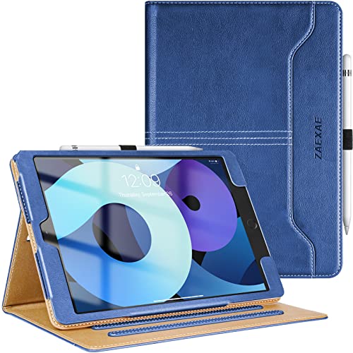 ZAEXAE Custodia Cover per iPad 9/8/7 (10.2 Pollici, 2021/2020/2019 Modello, 9a / 8a / 7a Generazione) con PU Pelle Supporto Tasca Auto Sveglia/Sonno Multi-Angolo, Apple iPad Tablet Case, Blu