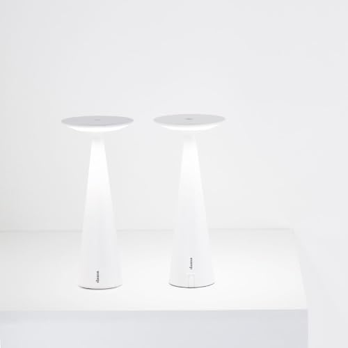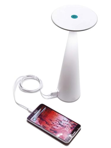 Zafferano - Dama Lampada LED Dimmerabile da tavolo in alluminio, Protezione IP54, Uso Interno/Esterno, Entrata USB laterale per ricarica dispositivi mobili, H29cm, Plug EU - Bianco
