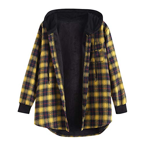 ZAFUL Giacca da donna con cappuccio Autunno Plaid Button Up Pocket Drop Shoulder Sciolto Cappotto, Giallo, XXL