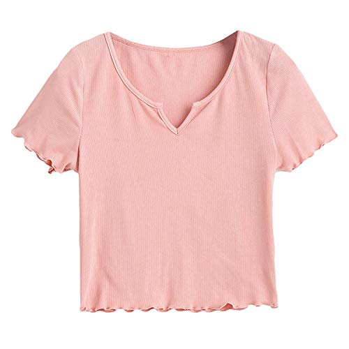 ZAFUL - Maglietta da donna, tinta unita, con scollo a V A-1-rosa L