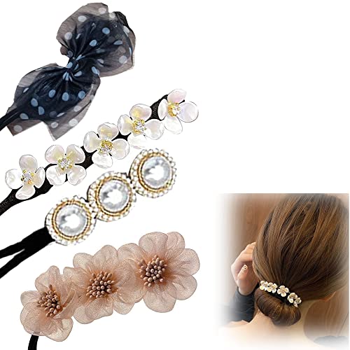ZAHD 4pz Creatore di panini per capelli Bun Abile per Capelli Stoffa Creatore per Acconciature Creatore di Ciambelle Hairstyle Donut Chignon Durevole ed elegante per I capelli delle ragazze 4 disegni