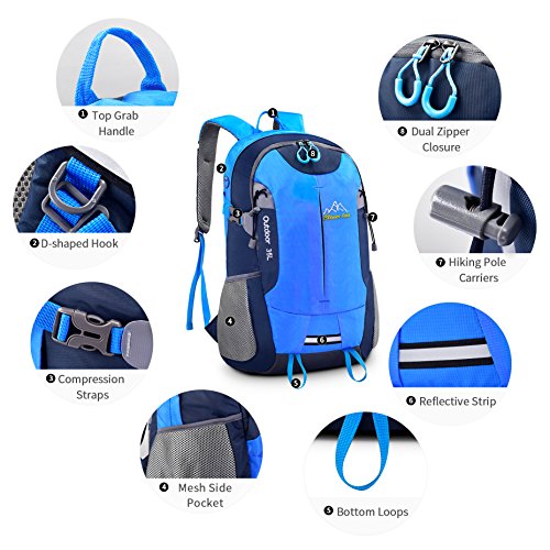 Zainetto da escursione Bonibol, zaino da campeggio/viaggio/casual ultraleggero e resistente all'acqua colore: blau-35L