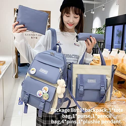 Set di 4 zaini carini, borse da scuola Kawaii, borsa per computer portatile, per tornare a scuola e fuori dal college accessori, Blu, L