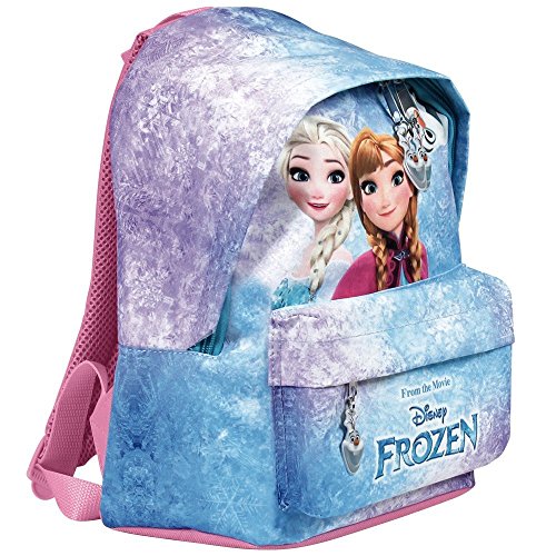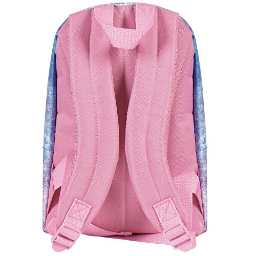Zaino Bambina Disney Frozen - Zainetto scuola con tasca frontale con stampa di Elsa e Anna - Cartella scolastica con spallacci imbottiti regolabili - Azzurro e rosa - 29x20x8 cm - Perletti