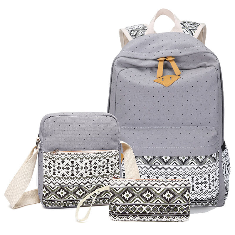 Zaino Bookbag Shoulder Handbag/Lunch Bag, Pencil/Makeup Bag Set Canvas Dot PC(Grigio)Il prodotto viene spedito in base al colore o alla dimensione dell'immagine della pagina principale del prodotto.Colore: grigioTela con bianco u0026 motivo geometrico blu a pois. MATERIALE ZAINO: tela con cerniere bifacciali lisce e cuciture rinforzate per una lunga durata. schiena e spalle. Puoi organizzare i tuoi strumenti con le tasche di diverse dimensioni. I tiretti in pelle sulla cerniera consentono di scivolare facilmente e senza intoppi. Il pannello posteriore imbottito e gli spallacci regolabili offrono un trasporto comodo e leggero. Lo scomparto imbottito per laptop si adatta perfettamente al tuo dispositivo, mentre lo scomparto principale è ideale per contenere libri di testo pesanti o altri oggetti. GRANDE CAPACITÀ: ampio zaino con 9 tasche multi-partizione per riporre bene i tuoi effetti personali, facile da riporre laptop da 15,6 pollici, libri, tablet, occhiali. S, penne, matite