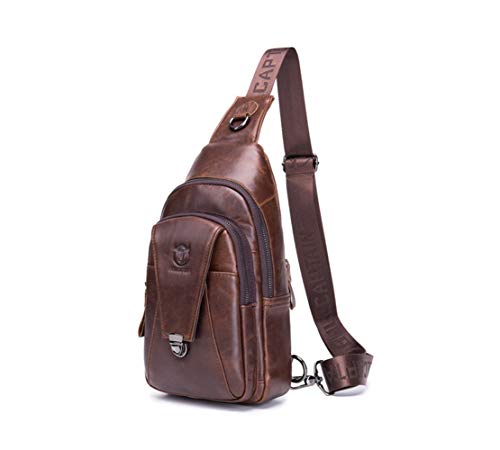 Zaino Borsa Uomo,Popoti Borsa Tracolla Spalla Borse Sportiva Daypack in Pelle Sling Chest Bag Crossbody per Viaggi Trekking (Coffee)