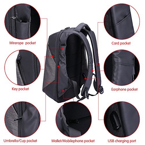 Zaino per Computer Portatile, 15,6 pollici Laptop Fach, protezione antifurto, Business Bag, escursionismo, Borsa da Lavoro Weekend, Zaino per la scuola, Zaino da viaggio con USB, riflettori, castello