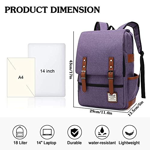 Zaino per computer portatile, da 15,6 pollici, per uomo, donna, college, viaggi d'affari, lavoro (viola)