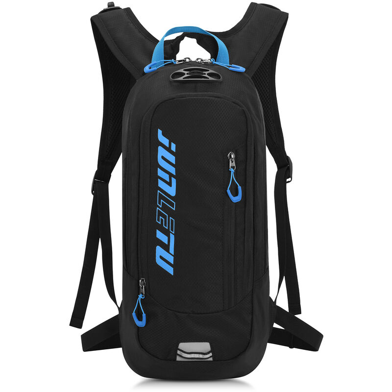 Questo zaino e realizzato in tessuto di nylon di alta qualita, leggero, resistente all'acqua e all'usura. e dotato di piu tasche per fornire spazio sufficiente per i tuoi effetti personali, ottimo per gli sport all'aria aperta come campeggio, ciclismo, escursionismo, corsa, viaggi, ecc. Caratteristiche: Realizzato in tessuto di nylon rip-stop, leggero e idrorepellente. La tasca principale e le due tasche frontali offrono spazio sufficiente per riporre le varie necessita. Scomparto interno separato progettato per la sacca d'acqua (non incluso). Le cinghie regolabili per spalle, petto e vita offrono una vestibilita personalizzata. Tessuto a rete su spallacci e schiena per una buona traspirazione e comfort. Strisce riflettenti per una maggiore visibilita e una guida sicura di notte. Speciale cordino di fissaggio sulla parte superiore per mantenere il casco in posizione. Adatto per ciclismo, arrampicata, campeggio, escursionismo, corsa, viaggi e altre attivita all'aperto. Specifiche