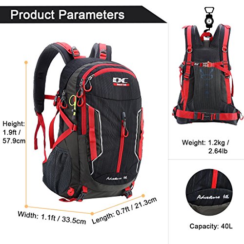 ✅ CINTURINI SOSPENSIONI ESTERNI, TRASPORTI: ci sono 6 cinghie esterne per il trasporto di oggetti di grandi dimensioni come bastoncini da trekking, sacco a pelo, materasso e cuscino, tenda, treppiede e altri. Dimensioni: 1.9ft * 1.1ft * 0.7ft (57.9cm * 33.5cm * 21.3cm), Capacità: 40L, Peso: 1.2kg (2.645lb)