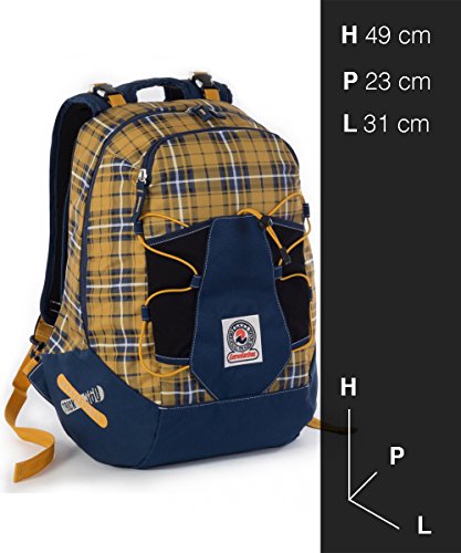 ZAINO INVICTA - TRICK 360 - Giallo Blue scacchi 2 zaini in 1 reversibile - scuola e tempo libero - 24 LT