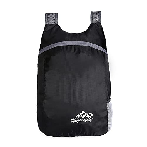 NC - Zaino leggero ripiegabile da 20 litri, resistente all'acqua, zaino da viaggio, pieghevole, da campeggio, all'aperto, colore: nero, Nero