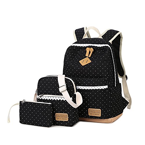 Zaino Leggero Di Tela di canapa casuale Zaino Sveglio Della Scuola Del Sacchetto Di Spalla del Libretto del Puntino di Puntino Per Teenager By Melissa Wizard (nero)