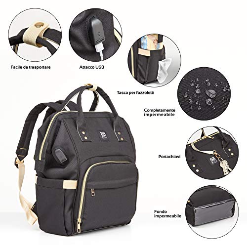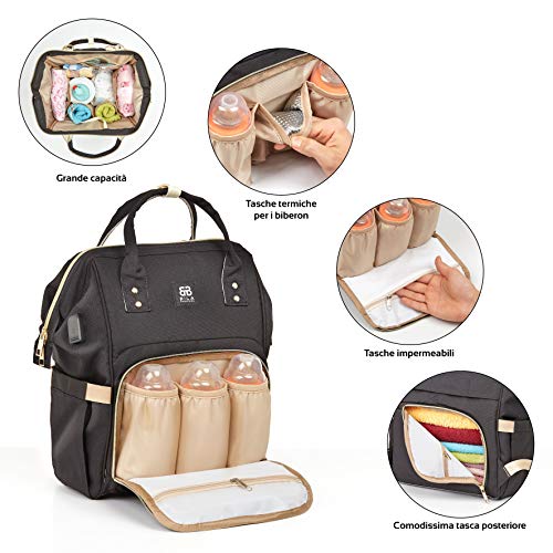 Zaino Mamma Multifunzione BILA Zaino Neonato Fasciatoio.Borsa Passeggino Cambio Neonati,Impermeabile,Usb,Grande Capacità,3 Tasche Isolanti Porta Biberon,2 Ganci Passeggino,Materassino Fasciatoio