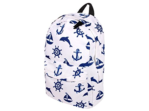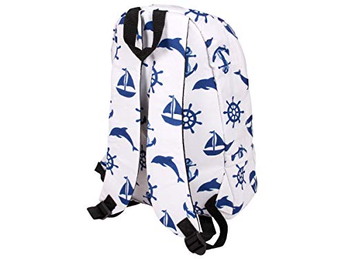 Zaino | Marittimo | Blu Bianco | 40 x 35 cm | Grande | Regolabile | 1 Tasca frontale | Chiusura a Lampo | Borsa Viaggio | Scuola | Università