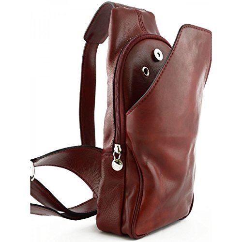 Zaino Monospalla In Vera Pelle Con Tasca Frontale Colore Rosso - Pelletteria Toscana Made In Italy - Zaino
