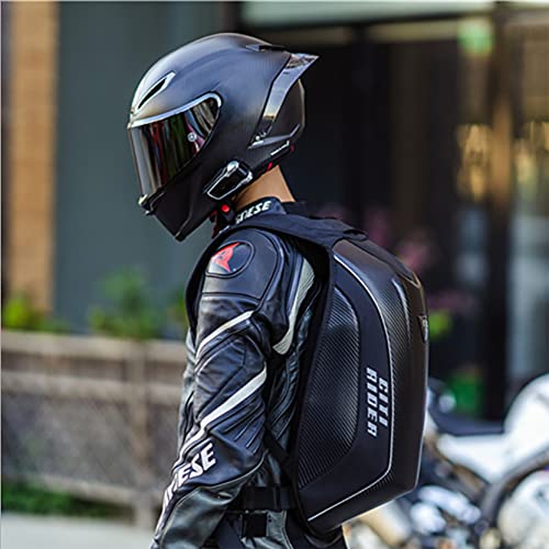Zaino da Motociclista per Uomo e Donna, Modello in Fibra di Carbonio, Casco da Motociclista, Borsa a Guscio Rigido Impermeabile, Borsa da Esterno Riflettente Black-56 * 37cm