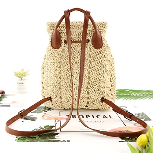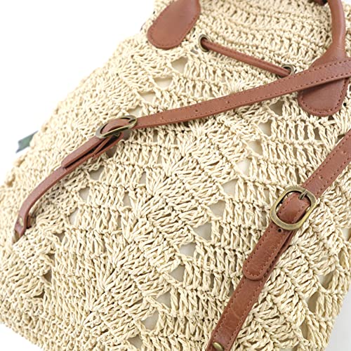 Zaino di paglia da donna Boemia Tessuto Borsa Zaino Boho Borsa a tracolla Casual Zaino Scava fuori Paglia Beach Zaino, Beige-32x30x35cm