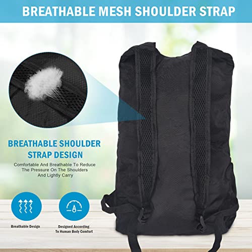Zaino pieghevole ultra leggero, zaino pieghevole, piccolo zaino nero, zaino da trekking, impermeabile, con borsa per viaggi, escursionismo, campeggio, ciclismo, sport all'aria aperta, unisex, Nero