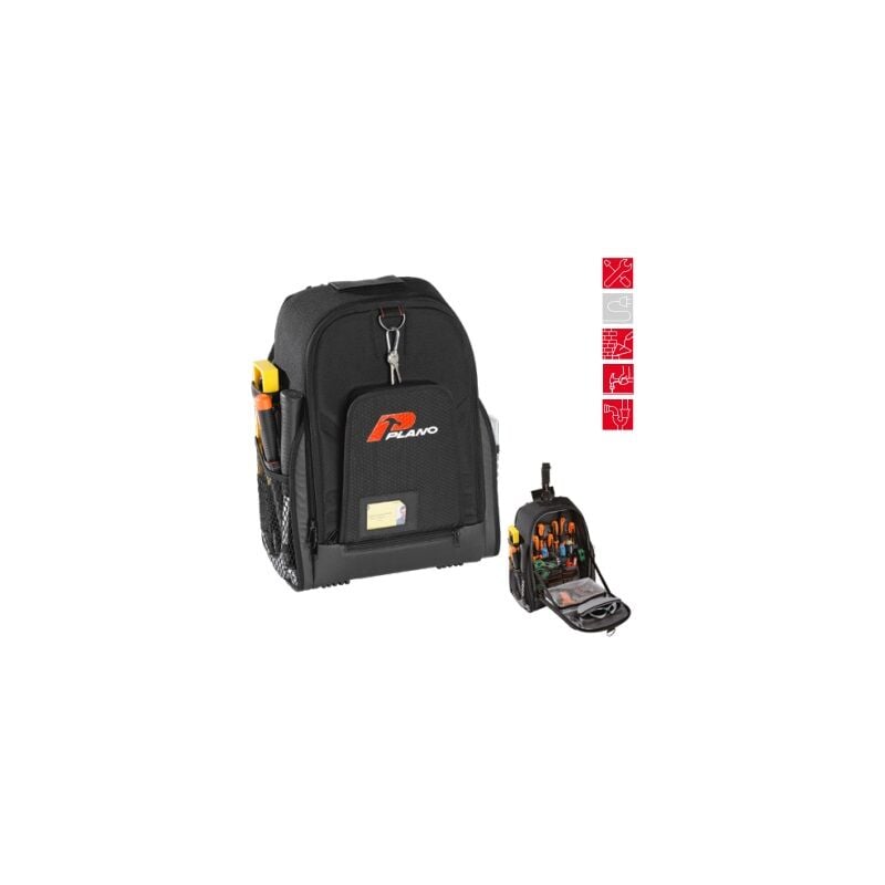 I portautensili della linea Plano Technics sono stati studiati per proteggere tutti gli strumenti,attrezzi, utensili e elettroutensili da lavoro anche quelli pi� delicati, garantendo massima affidabilit� e funzionalit� d'uso. Zaino portautensili professionale Plano Technics 513013 a doppio sistema di apertura. Dotato di vano porta trapano/avvitatore con cinghie di sicurezza con sistema di bloccaggio di sicurezza. Pannello interno estraibile con scomparti porta-organiser. Tasca imbottita per tablet o pc. Caratteristiche: Zaino portautensili professionale a doppia apertura;
