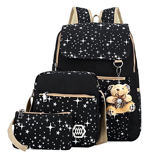 Zaino della ragazza, CulturesIn 3 pezzo femminile versione coreana del sacchetto dell'allievo borsa di tela zaino universitario vento borsa a tracolla (black)