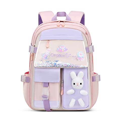 Zaino per ragazze per bambini Elementare Bookbag Girly School Bag con coniglio carino che scorre paillettes Decor per bambini, rosa, Medium