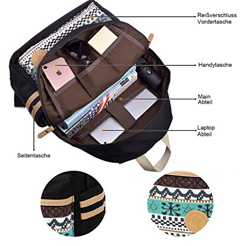 Zaino Scuola, Zaino Arimaya Classic College Canvas Zaino Zaino durevole per College School Viaggi Escursionismo-Adatto A4 cartelle 14-Pollici Laptop