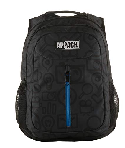 Zaino Sporty Appack, MICRO MACRO NEW GEN, Nero, 26 Lt, Tasca laterale rete, Scuola e Tempo Libero