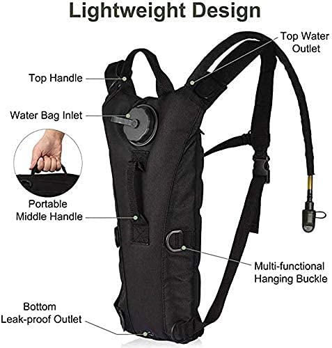 Zaino tattico da 3 l, per escursionismo, campeggio, militare, portatile, per escursionismo, trekking, borsa dell'acqua (nero)