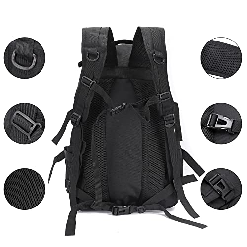 LHI Zaino Tattico Militare Uomo Molle Zaino Moto con Riflettente, Zaino Scuola per Trekking all'aperto Escursionismo Sportivo (35L nero)