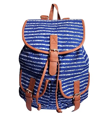 Zaino Tela Canvas Simil Pelle Uomo Donna FIbbie Multitasche Fantasia Blu Tessuto Zainetto Borsa Mare Tempo Libero Scuola Università Unisex