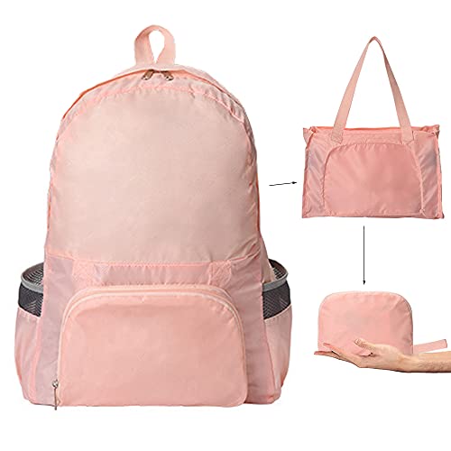 Zaino Ultraleggero a duplice Uso, Zaino da Escursionismo Zaino Pieghevole Impermeabile Piccolo Zaino da Viaggio Ripiegabile da Campeggio all'aperto per Donne e Uomini, Rosa