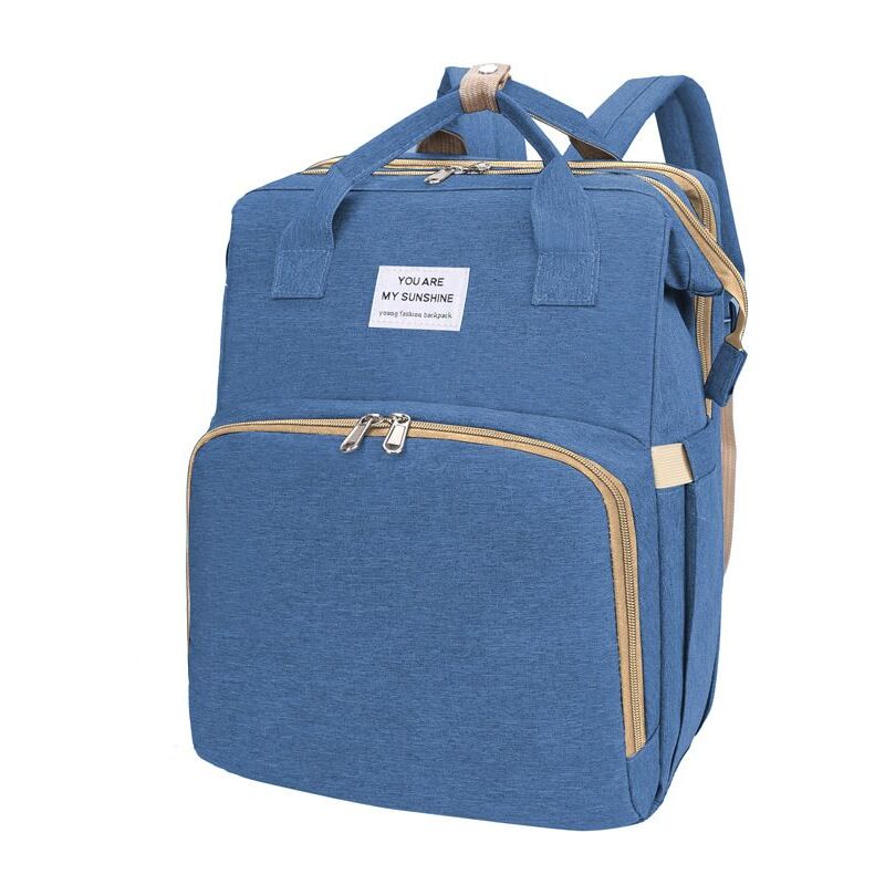 Zaino/borsa per mamma multifunzionale con funzione nanna - blu. Lo zaino è stato creato per la mamma moderna che è costantemente in movimento. Dotato di pratici scomparti, anche per riporre diverse bottiglie di cibo o bevande per il tuo bambino, una tasca per le salviette umidificate che puoi utilizzare senza rimuovere l'intera confezione, e uno scomparto principale per riporre gli oggetti più grandi. Lo zaino è versatile e permette al tuo piccolo di riposare mentre viaggia in un mini lettino da viaggio. Il design multifunzionale dello zaino permette di utilizzarlo come borsa o borsa da passeggino Caratteristiche del prodotto: Lettino da viaggio integrato Tasca per riporre salviette umidificate Spazio per una bottiglia di cibo Possibilità di appenderlo come borsa da passeggino Specifiche tecniche: Capacità: 20-35 L Dimensioni dello spazio per la zona notte: lunghezza 68 cm x larghezza 26 cm x altezza (lati) 25 cm