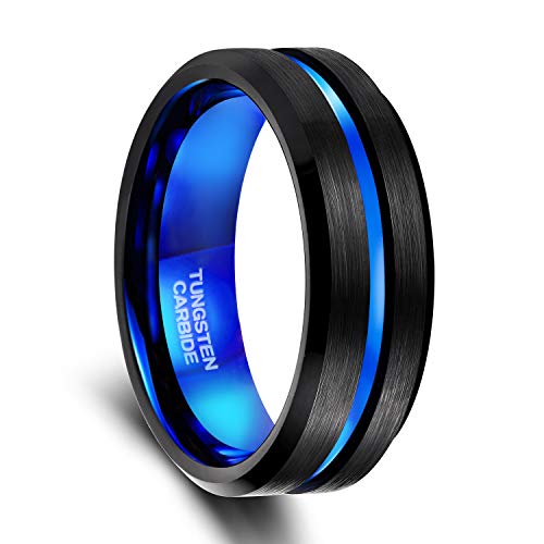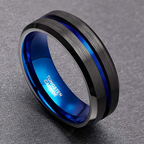 Zakk Anelli da uomo e donna in tungsteno 8 mm spazzolato nero blu argento oro rosa anelli di fidanzamento fedi nuziali misure da 52 a 75 e tungsteno, 53 (16.9), colore: nero e blu., cod. WG08050LB065