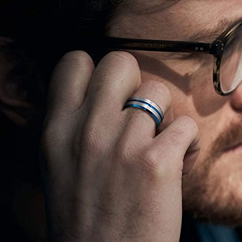 Zakk 8mm Anelli da uomo e donna in tungsteno spazzolato anelli di fidanzamento fedi nuziali (Argento-Blu,58 (18.5))