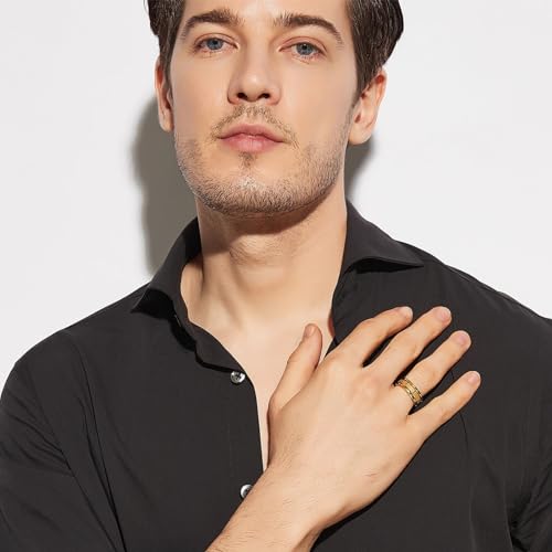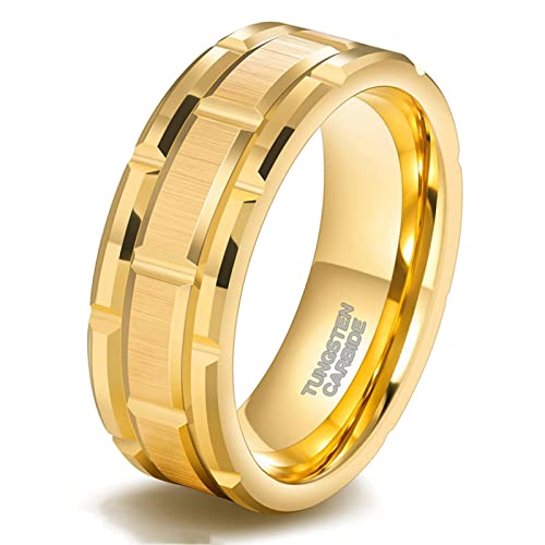 Zakk Anelli da uomo tungsteno nero oro argento motivo mattoni anelli di fidanzamento anelli dell'amicizia 8mm (Oro,54 (17.2))