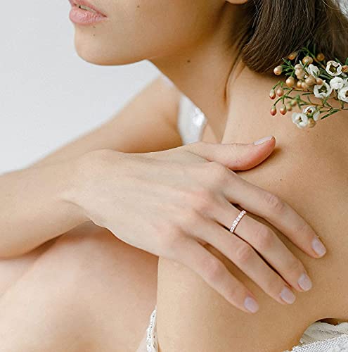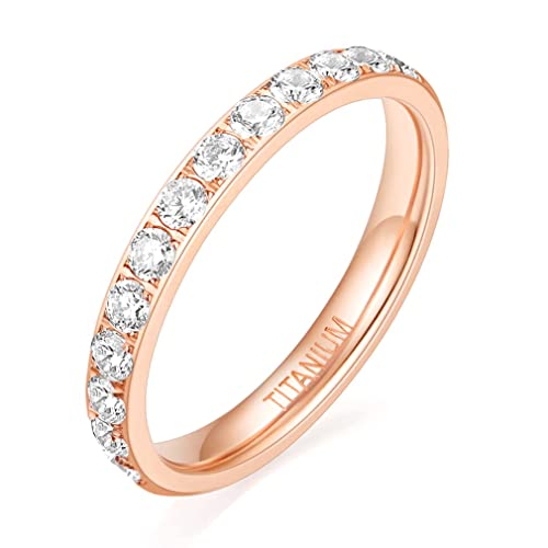 Zakk 3mm Eternity Anello da donna in titanio anelli di fidanzamento fedi nuziali con zirconi cubica (Oro rosa-Mezza Zirconia,52 (16.6))