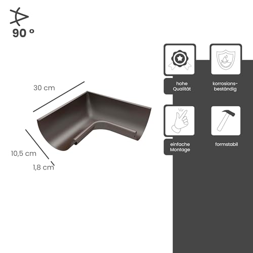 ZAMBELLI Angolo di grondaia 90 gradi (angolo interno) zincato 250 marrone rame Angolo di grondaia con bordo interno per grondaia semicircolare, senza saldatura